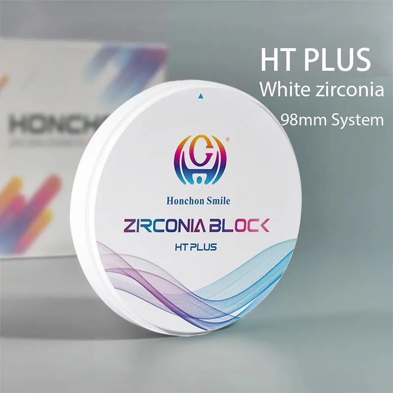 HONCHON 98×14 HT 백색 지르코니아 디스크는 크라운 및 브릿지와 같은 안정적이고 신뢰할 수 있는 치과 수복물을 생산하도록 설계되었습니다. 주위의 굽힘 강도1350MPa그리고 반투명도는 약40%, 후방 수복물 및 장경간 브리지에 적합합니다-.